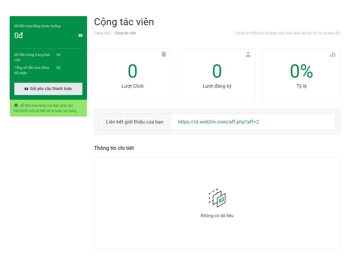 Link giới thiệu của bạn : chứa link mà bạn có thể gửi cho khách hàng đăng ký dịch vụ, hoặc bạn có thể đính kèm trong banner hoặc đường dẫn website – khi click qua link này sẽ ghi nhận bạn là người tiếp thị sản phẩm.